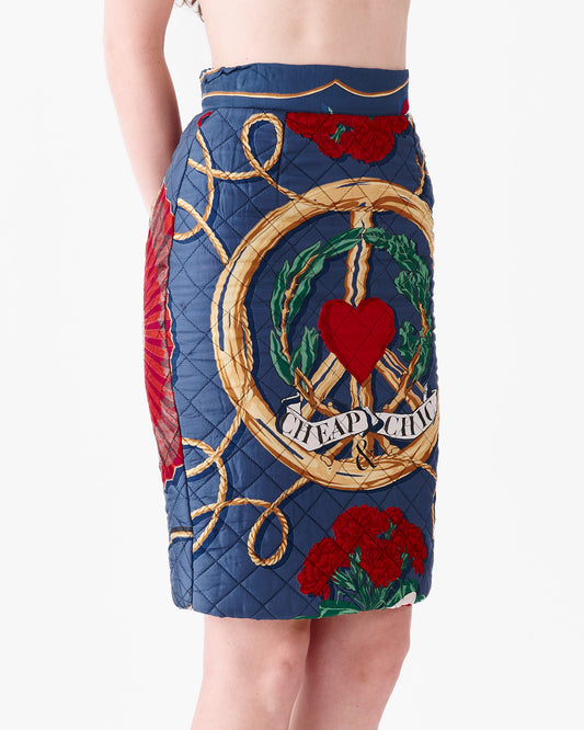 Moschino 90s Piece Sign Quilted Skirt